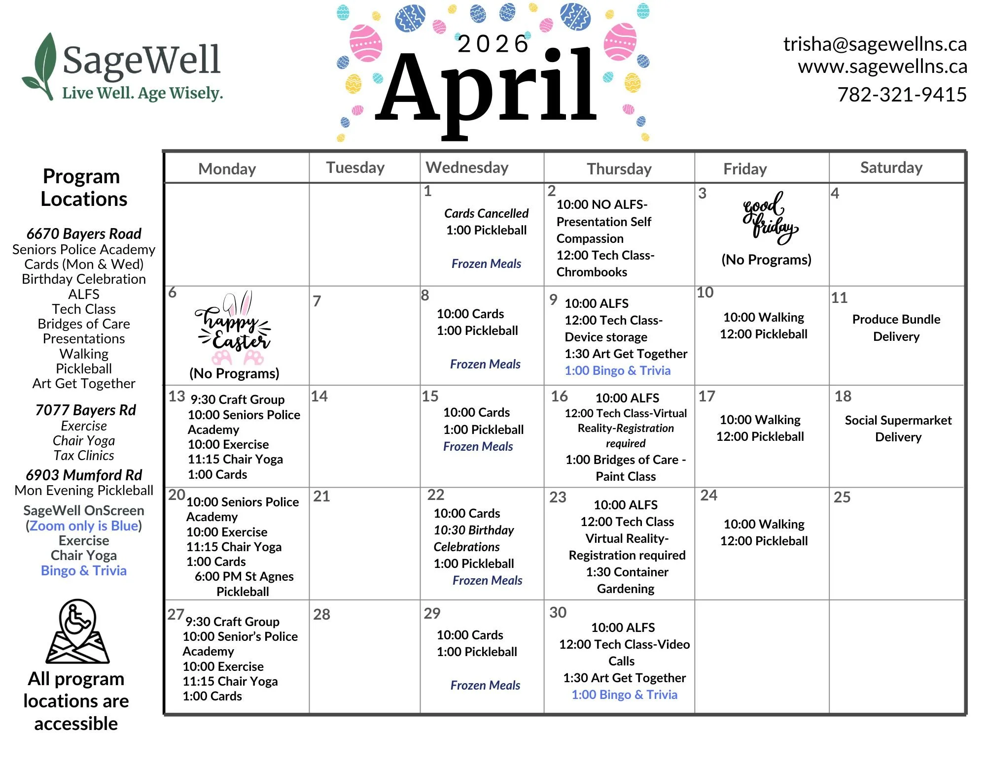Craft Group: 9:30-11:00AM Please email: Kathleen@sagewellns.ca for the address